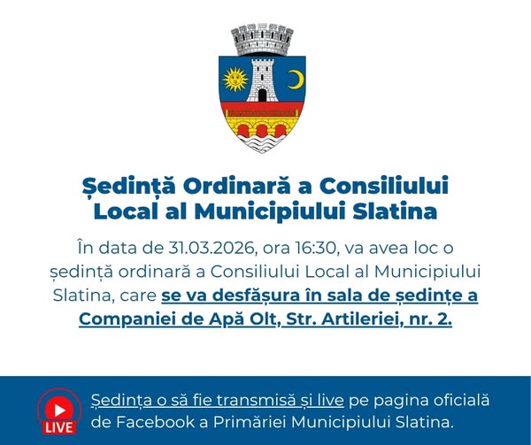 Ședința o să fie transmisă și live pe pagina oficială de Facebook a Primăriei Municipiului Slatina.