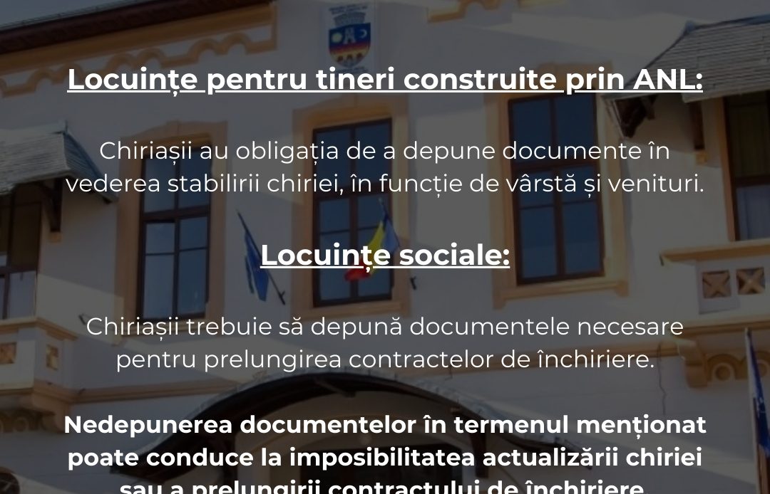 Primăria Municipiului Slatina, prin Direcția Administrare Patrimoniu, informează chiriașii următoarelor categorii de locuințe: