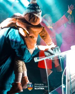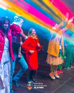 În jurul lor – o mulțime de copii fericiți, curioși și nerăbdători să vadă momentul magic. 🎄 Atmosfera a fost caldă, plină de entuziasm, râsete și sentimentul acela frumos că vine, în sfârșit, perioada în care orașul prinde viață în culori.
