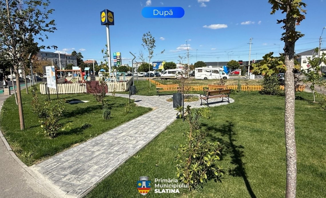 Parcă ieri era un spațiu neglijat, dar astăzi, parculetul din zona sensului giratoriu – cartierul Steaua – arată complet schimbat.